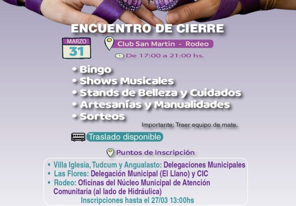 31 de marzo Club San Martín – Rodeo De 17:00 a 21:00 hs Habrá: Bingo Shows musicales...