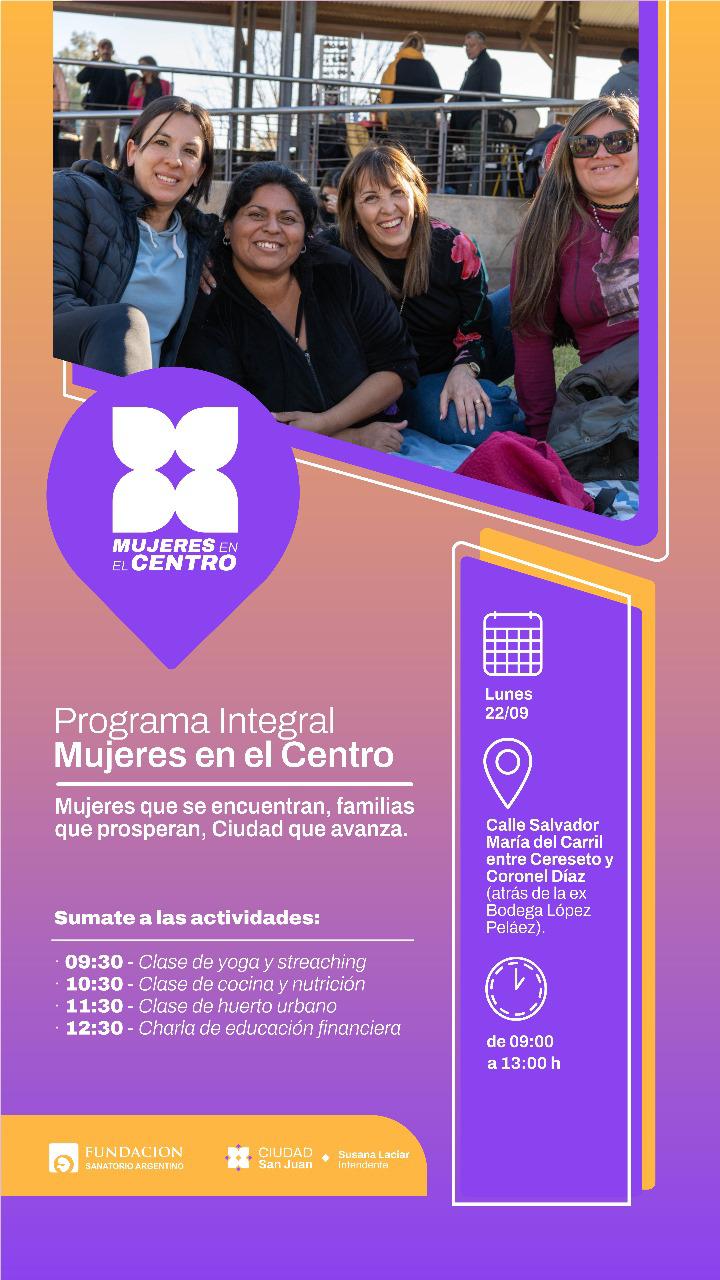 La Municipalidad de la Ciudad de San Juan presenta la primera edición del Programa Integral “Mujeres en el Centro”, una propuesta transversal y gratuita que promueve el acceso a la salud, el empleo, la formación y los derechos, con foco en las mujeres de los distintos barrios de la Ciudad.