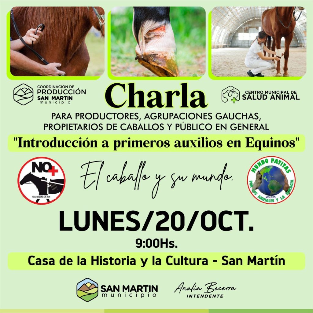 La Municipalidad de San Martín invita a productores, agrupaciones gauchas, propietarios de caballos y vecinos interesados a participar de la charla Introducción a primeros auxilios en equinos – El caballo y su mundo.
