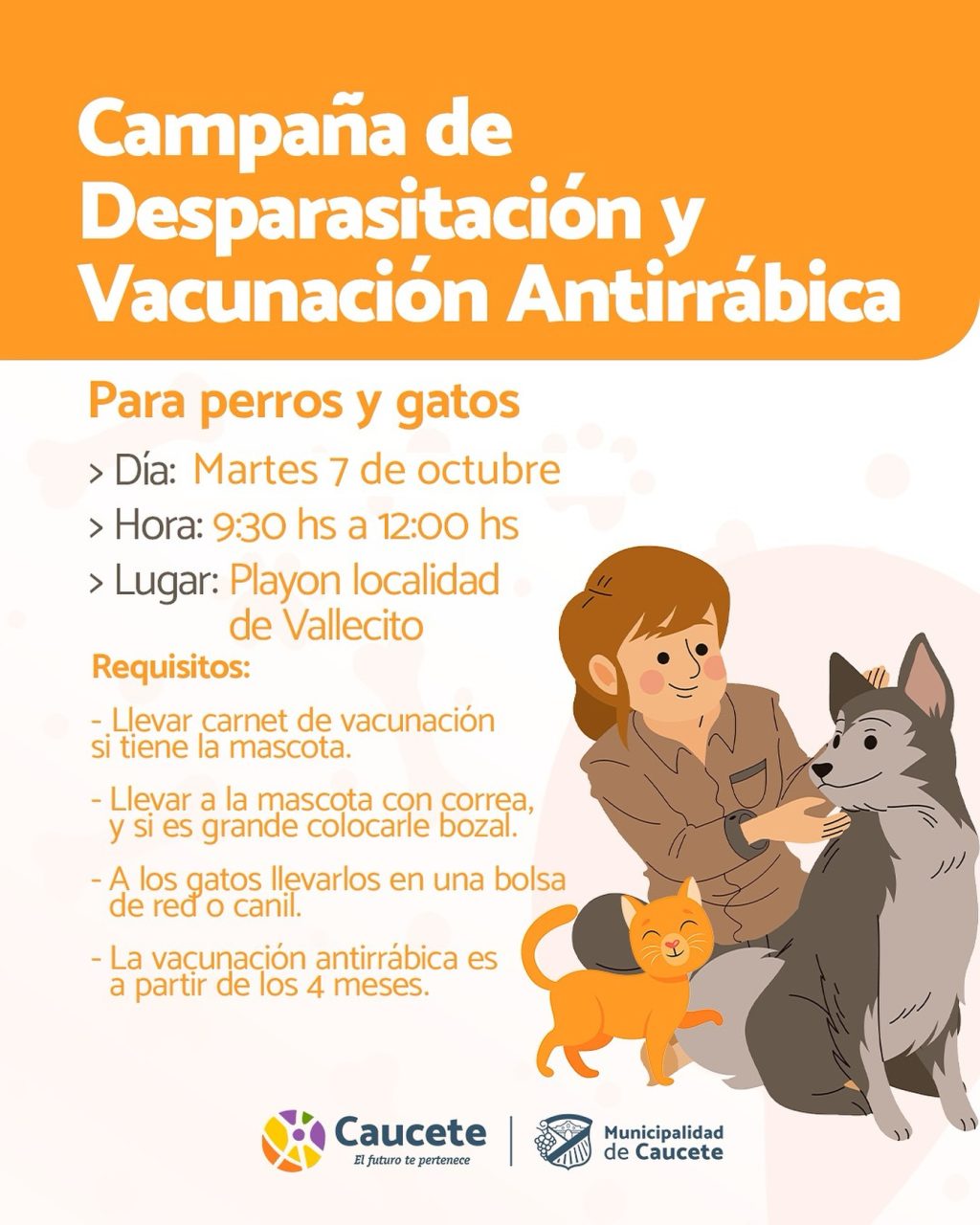Este martes estaremos en Vallecitos con una jornada gratuita de atención veterinaria para perros y gatos.