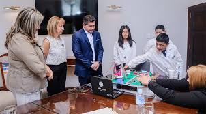 El gobernador Marcelo Orrego recibió en Casa de Gobierno a los estudiantes de la Escuela Hipólito Vieytes de Caucete, quienes obtuvieron el primer puesto en las III Olimpíadas Nacionales de Robótica organizadas por la Universidad Iberoamericana de Informática en la Ciudad Autónoma de Buenos Aires. Estuvo acompañado además por la ministra de Educación, Silvia Fuentes.