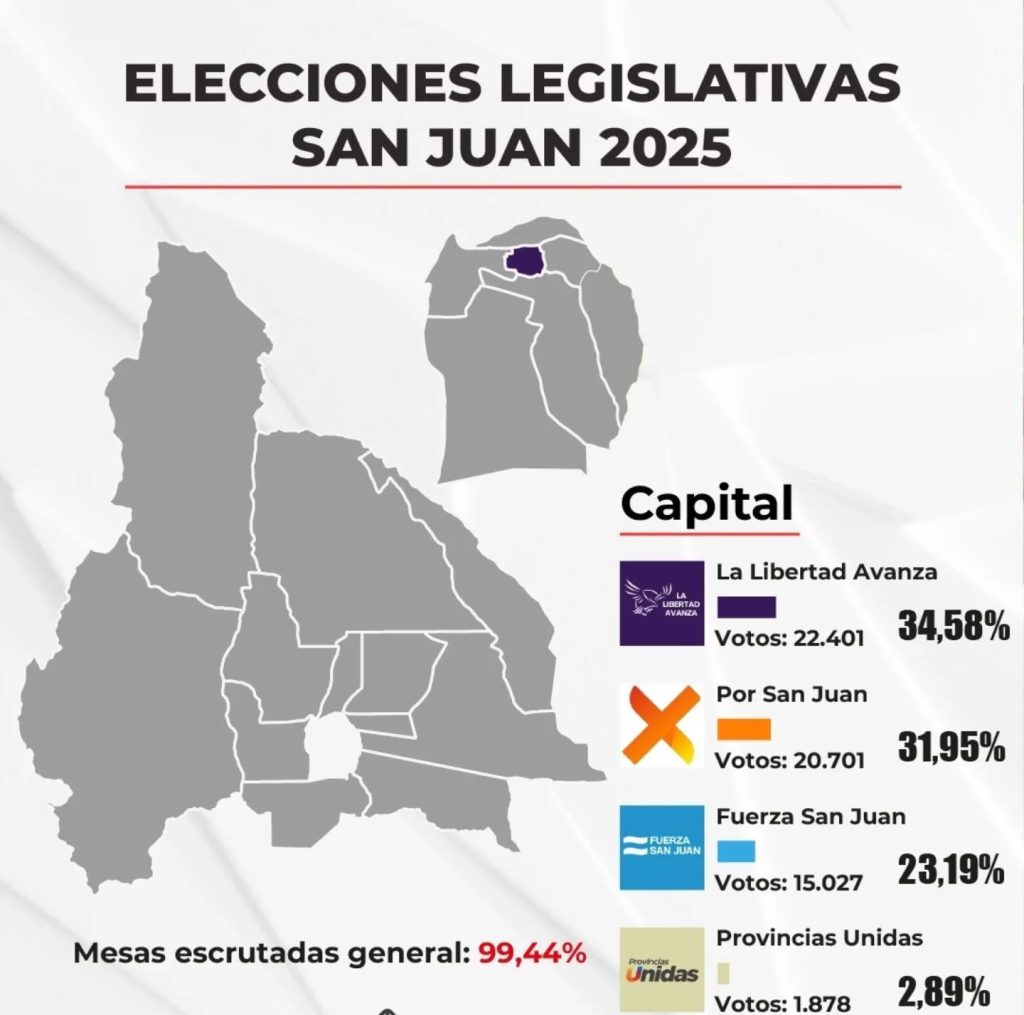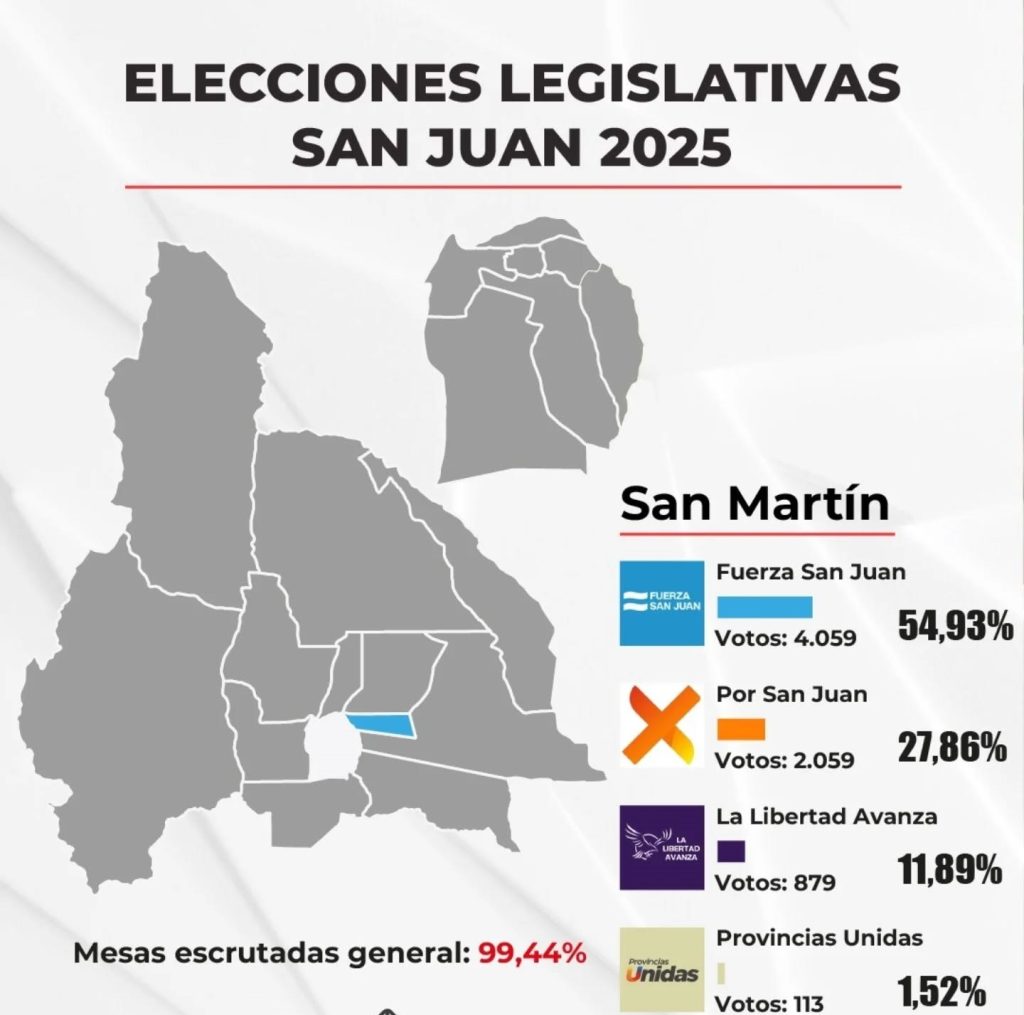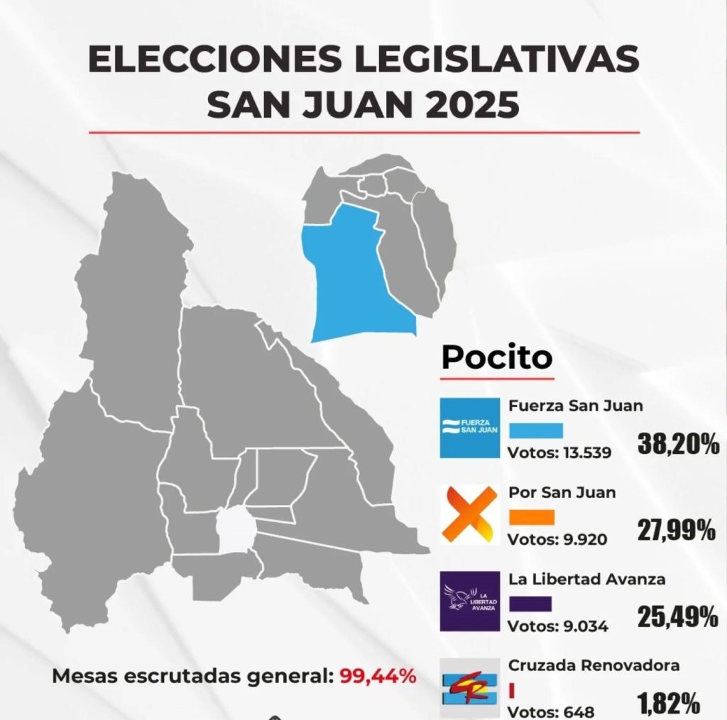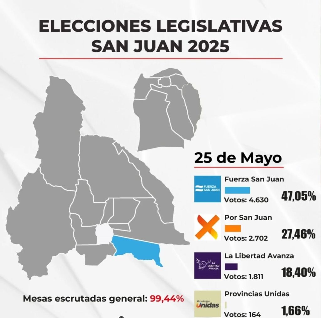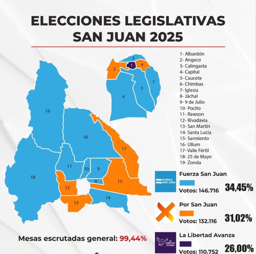 El contexto nacional ayudó. El presidente Javier Milei consiguió un triunfo categórico en 16 provincias, incluyendo San Juan, e incluso dio el golpe en la provincia de Buenos Aires. Ese envión terminó impactando en el electorado local, que se inclinó por respaldar al oficialismo nacional pese a las turbulencias económicas y los escándalos mediáticos que marcaron los últimos meses de gestión.