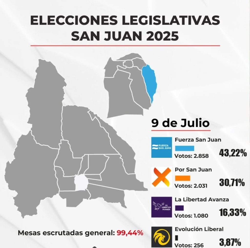 Así, los tres principales espacios provinciales tendrán representación en el Congreso de la Nación, reflejando una foto política fragmentada que expresa con nitidez el pulso del electorado sanjuanino.