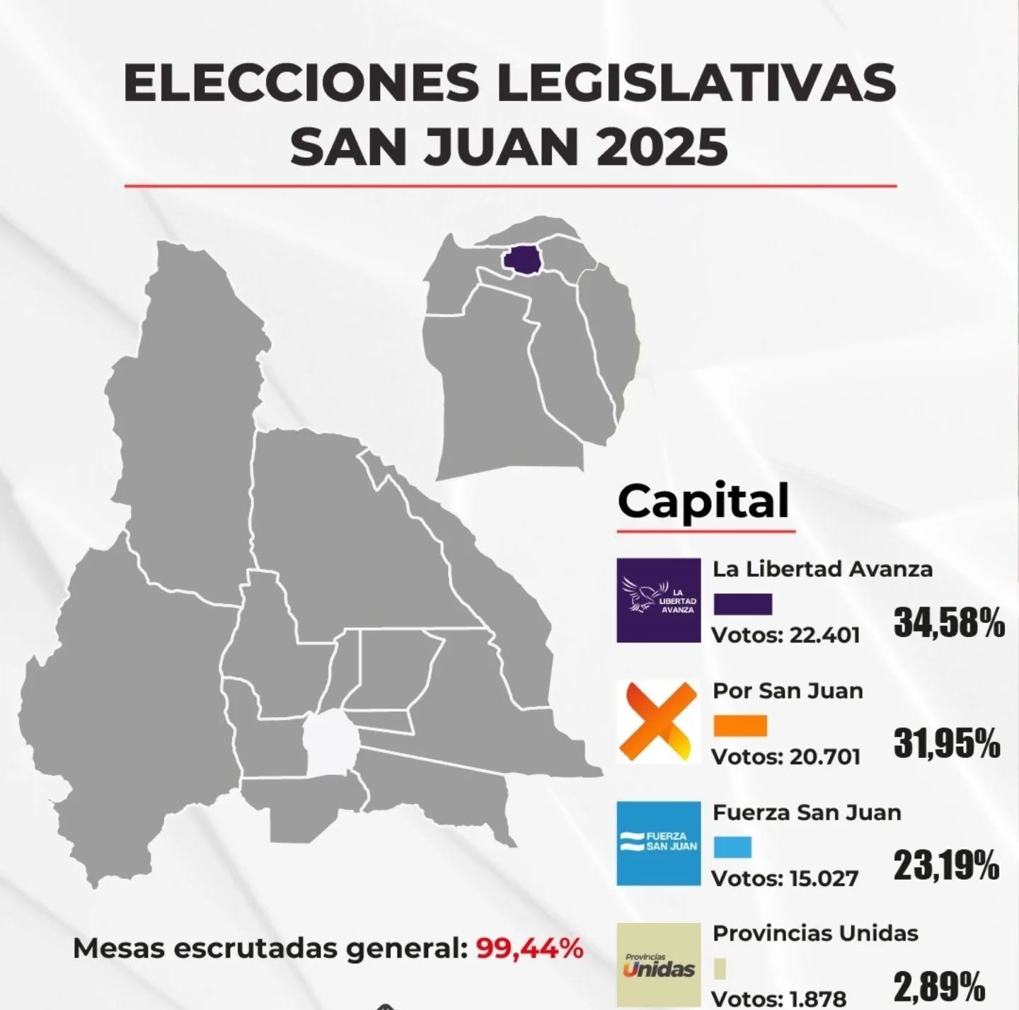 Así, los tres principales espacios provinciales tendrán representación en el Congreso de la Nación, reflejando una foto política fragmentada que expresa con nitidez el pulso del electorado sanjuanino.