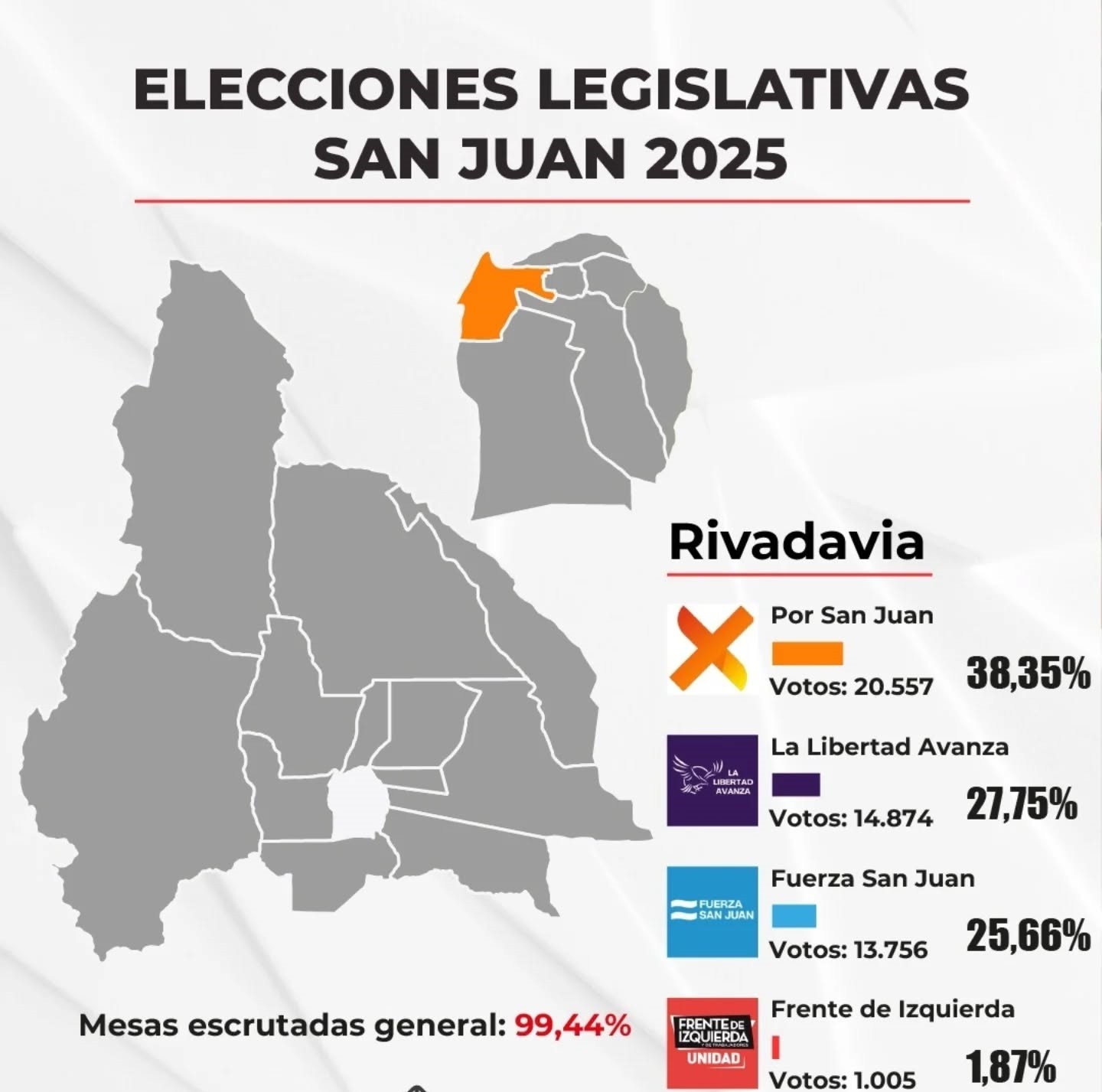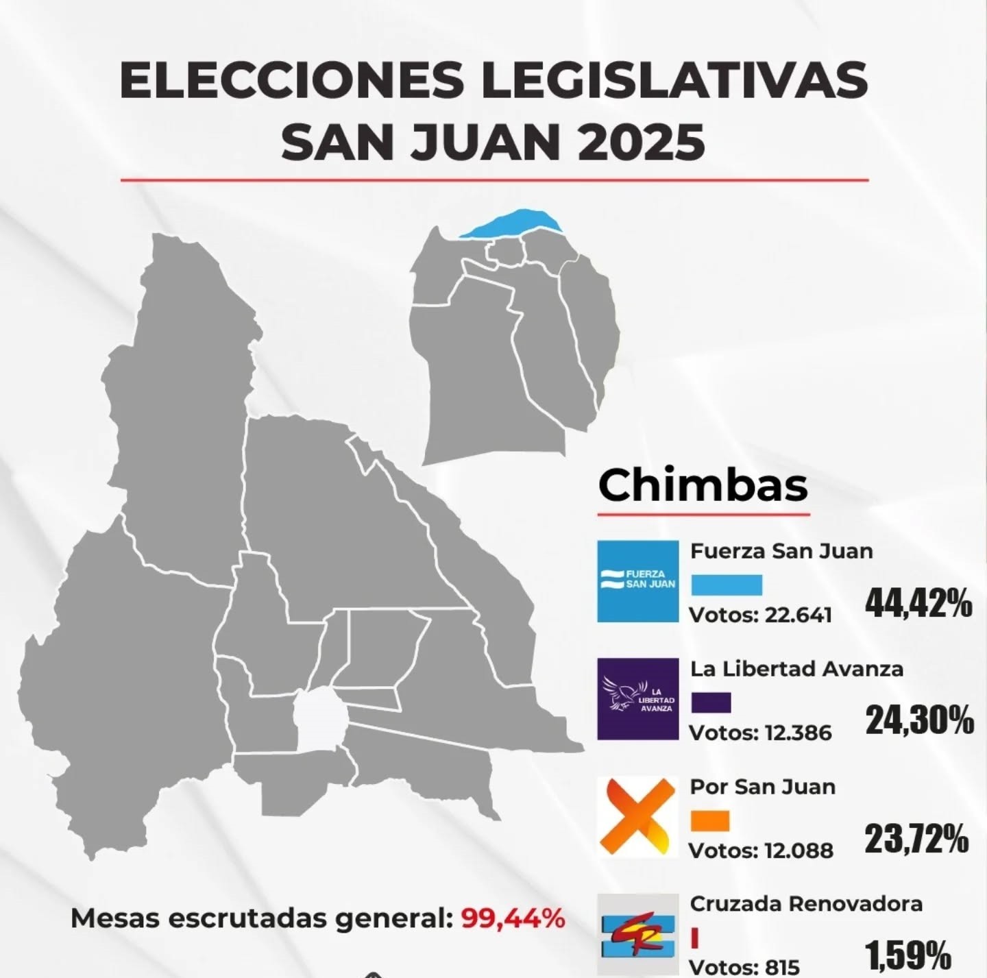 El contexto nacional ayudó. El presidente Javier Milei consiguió un triunfo categórico en 16 provincias, incluyendo San Juan, e incluso dio el golpe en la provincia de Buenos Aires. Ese envión terminó impactando en el electorado local, que se inclinó por respaldar al oficialismo nacional pese a las turbulencias económicas y los escándalos mediáticos que marcaron los últimos meses de gestión.