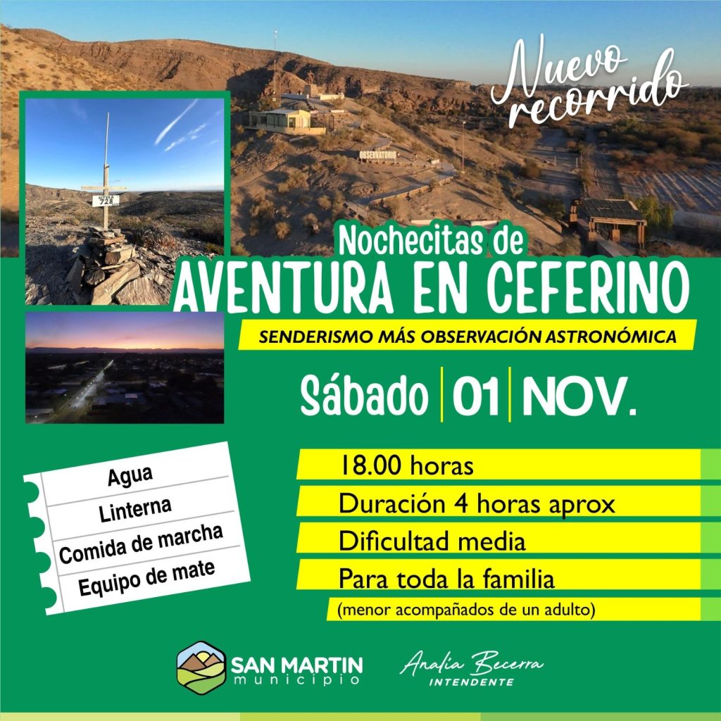 Durante el recorrido, los participantes podrán apreciar los paisajes del cerro Pie de Palo y, al caer la noche, contemplar el cielo en una jornada de conexión con la naturaleza, la fe y el conocimiento.