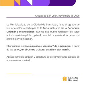 La Municipalidad de la Ciudad de San Juan informa el cronograma semanal correspondiente al mantenimiento del arbolado público, que se ejecutará desde el lunes 10 hasta el domingo 16 de noviembre en diversos sectores de la capital. Las tareas incluyen despeje de luminarias, corte de ramas bajas, atención de reclamos y erradicación de árboles que representen riesgo para los vecinos.