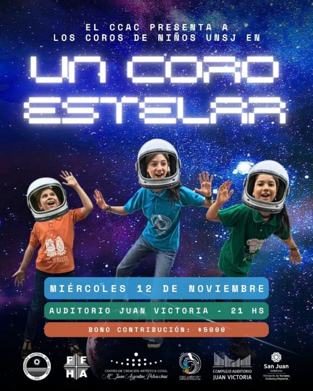 El Centro de Creación Artística Coral de la Universidad Nacional de San Juan (UNSJ) invita a disfrutar del concierto “Un Coro Estelar”, protagonizado por los tres coros de niños de la UNSJ: Los Jilgueritos, Coro de Niños Preparatorio y Coro de Niños y Jóvenes.