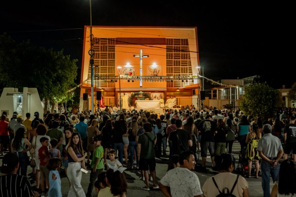 Una apreciable cantidad de personas de dio cita en la primera noche de la Fiesta de Santa Bárbara que se desarrolló en el anfiteatro Mario «Bebe» Flores de la Plaza De La Libertad, celebración que es organizada por el Municipio de Pocito.