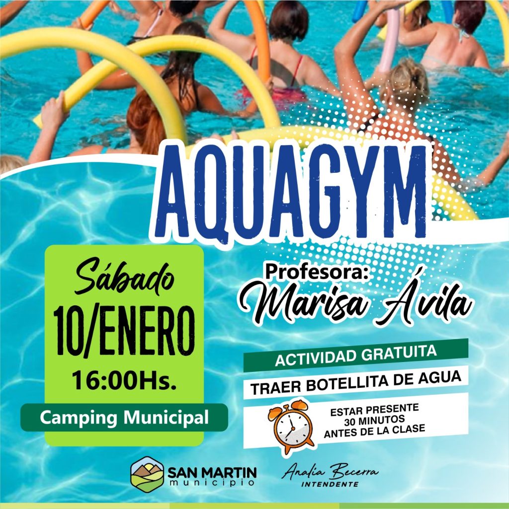 La Municipalidad de San Martín invita a vecinas y vecinos a participar de una clase gratuita de Aquagym que se realizará en el Camping Municipal, en el marco de las actividades recreativas y saludables que se impulsan durante la temporada de verano.