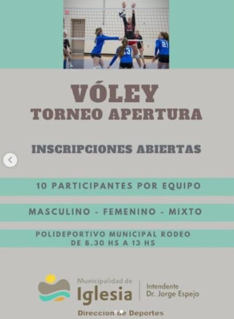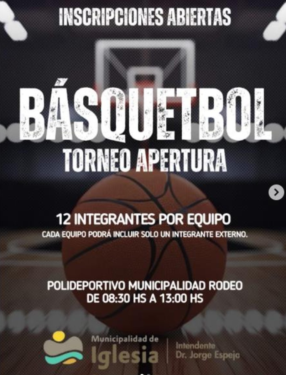 La Municipalidad de Iglesia, a través de la Dirección de Deportes, informa que mañana comienzan las inscripciones para los Torneos Apertura de Básquet y Vóley.
