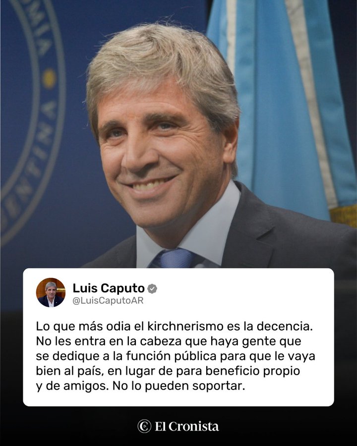 A través de un mensaje publicado en el diario digital El Cronista en la red social X el pasado 3 de febrero, el ministro de Economía lanzó duras críticas contra la oposición, a la que acusó de carecer de “decencia” y de no concebir una gestión pública orientada al interés general.