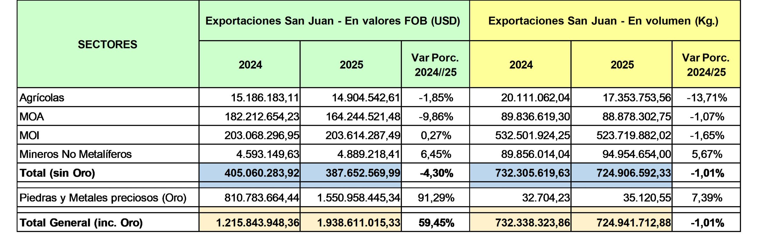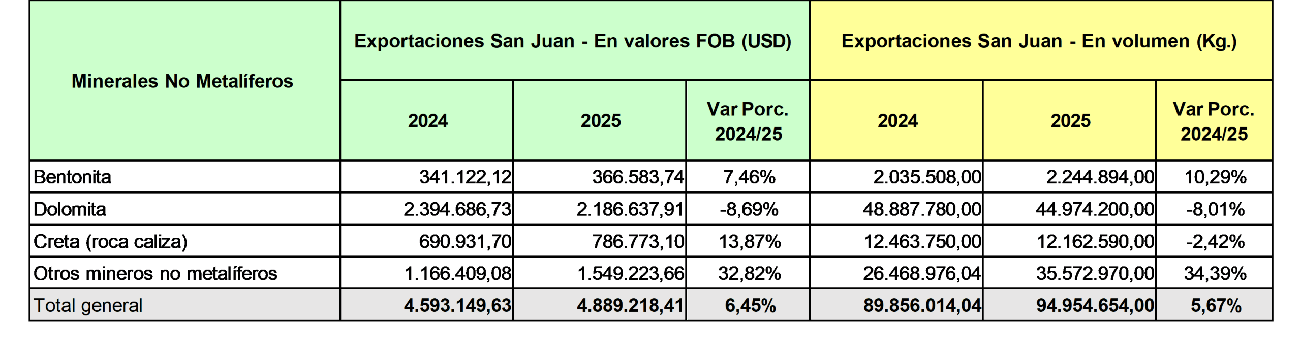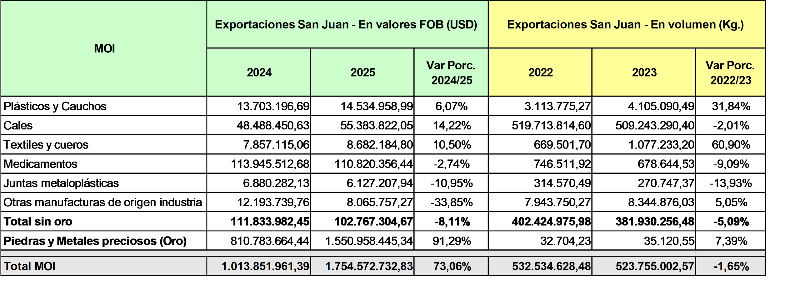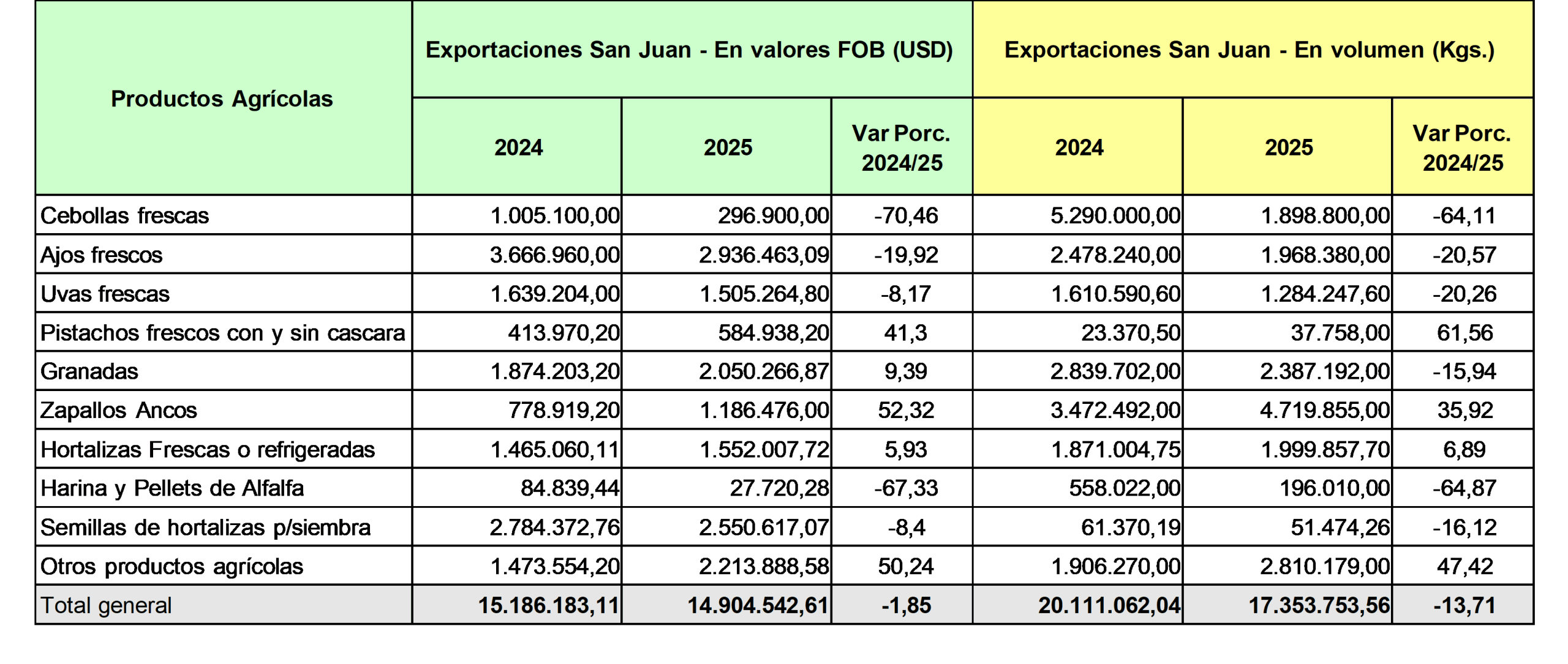 El presente análisis de la evolución de las exportaciones de productos tradicionales de la oferta exportable de San Juan, compara los 12 (doce) meses del año 2024 con los 12 (doce) meses 2025.
