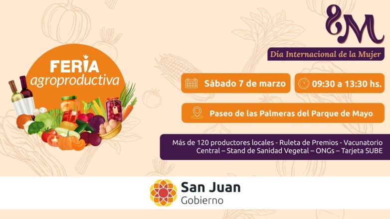 La Feria Agroproductiva de San Juan iniciará su calendario oficial este sábado 7 de marzo, de 9 a 13:30 hs, en el Paseo de las Palmeras del Parque de Mayo. En esta oportunidad, el encuentro tendrá una temática especial en homenaje al Día Internacional de la Mujer, con boxes de regalos y combos elaborados por los propios feriantes, pensados para celebrar y agasajar a las mujeres en su día.