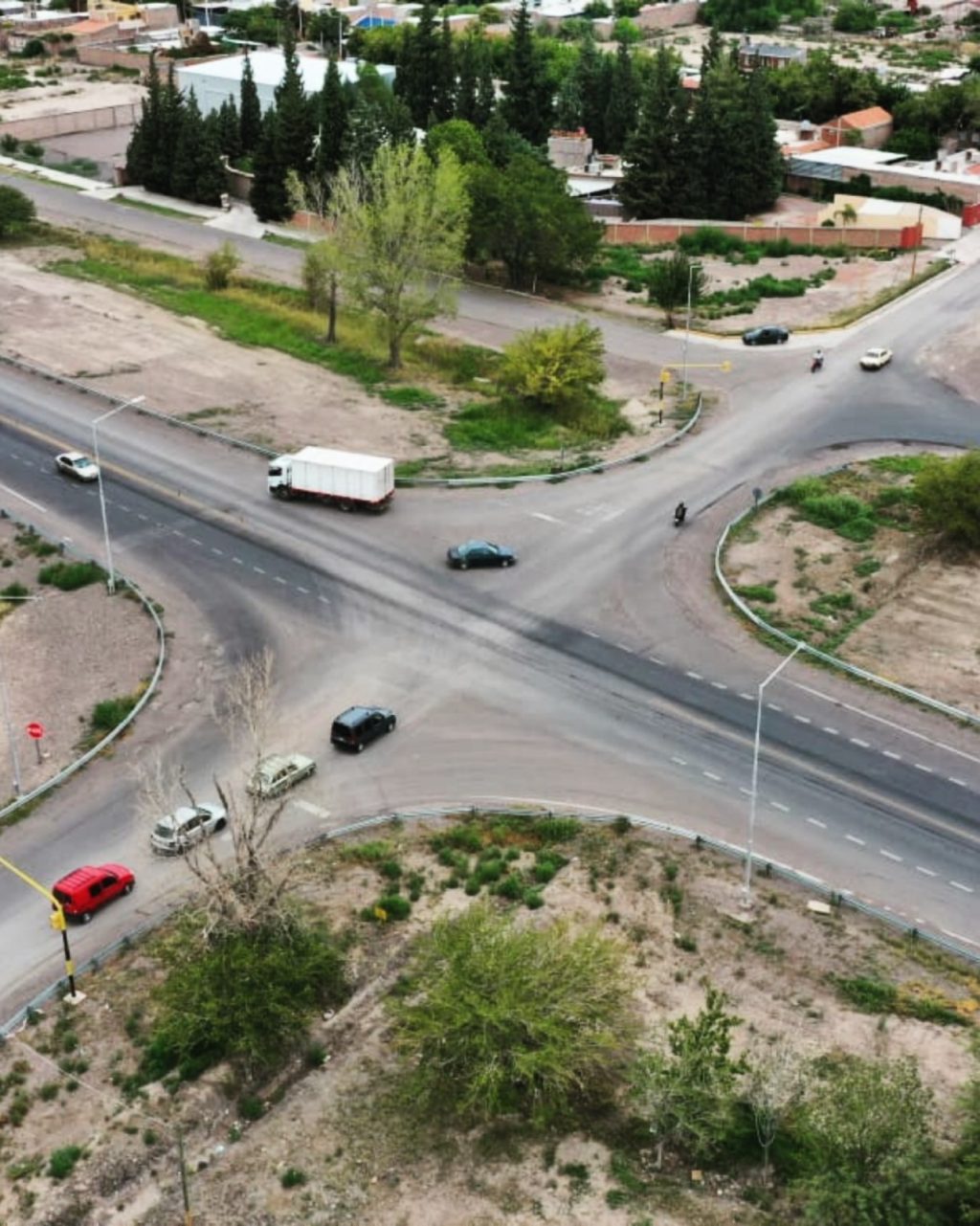 La intersección se ejecutará con pavimento flexible de alto rendimiento con asfalto modificado, adecuado para soportar el tránsito intenso y continuo que caracteriza a la Ruta Nacional 20. El diseño incorpora isletas elevadas canalizadoras, que guiarán el ingreso de los vehículos y promoverán la reducción de velocidad en las aproximaciones.