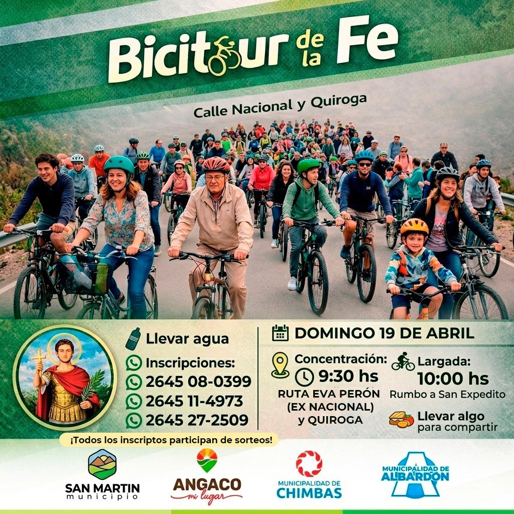 La Municipalidad de San Martín invita a participar de una nueva edición del Bicitour de la Fe, una propuesta que une actividad física, comunidad y espiritualidad en un recorrido pensado para disfrutar en grupo.