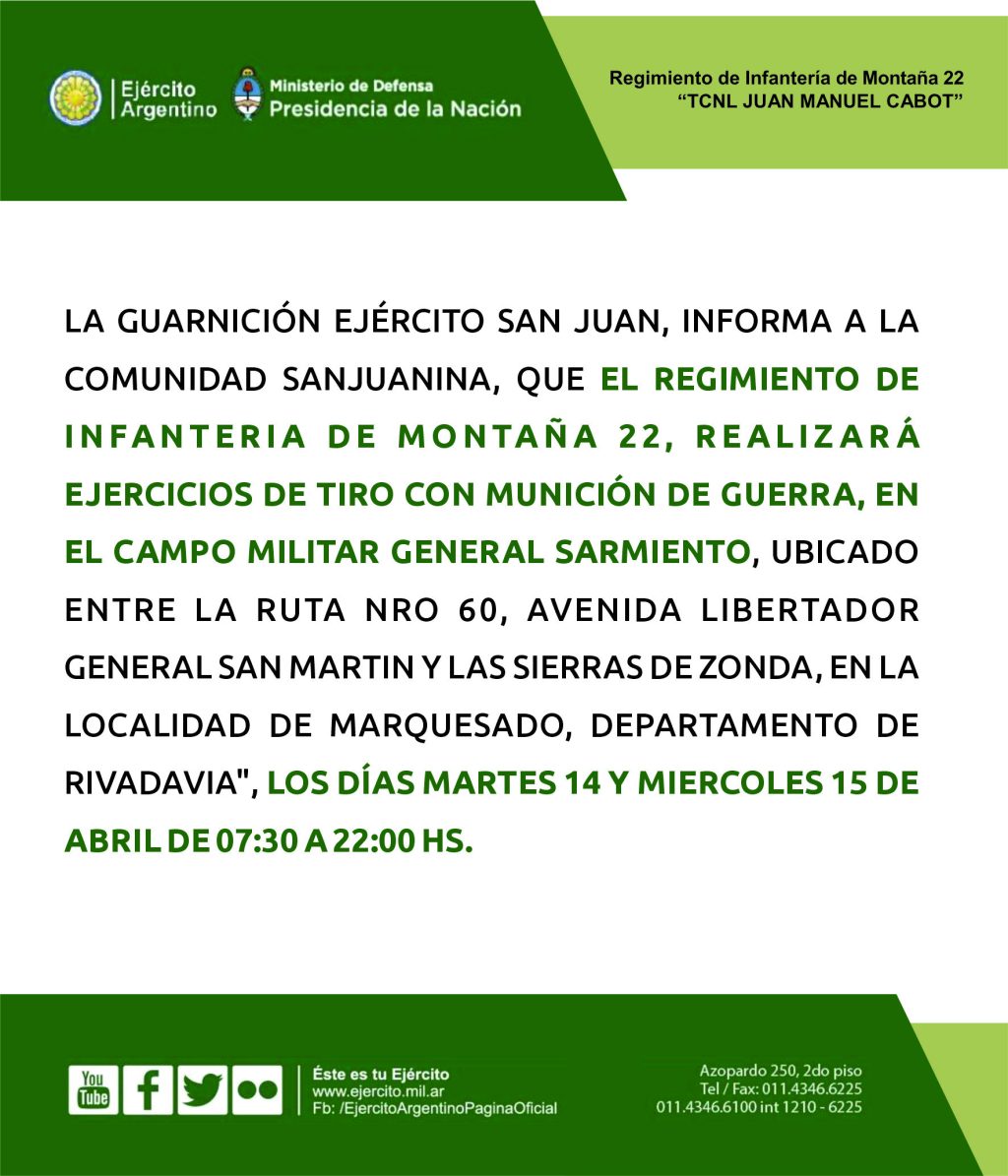 AVISOS OFICIALES Ejército Diario Las Noticias 15 abril, 2026 1 min read Facebook WhatsApp Twitter LinkedIn Tags: Avisos oficiales Continue Reading Previous: Paso de Agua NegraNext: Gira internacional 2026 NOTICIAS RELACIONADAS Mujeres Argentinas 1 min read AVISOS OFICIALES Mujeres Argentinas 15 abril, 2026 Donación de sangre 1 min read AVISOS OFICIALES Donación de sangre 15 abril, 2026 Airbag 1 min read AVISOS OFICIALES Airbag 15 abril, 2026
