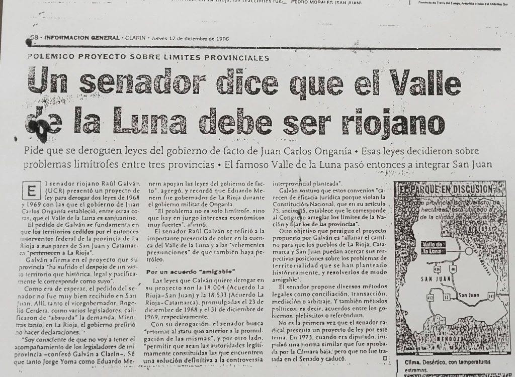El argumento de Galván es tan jurídico como político. Las leyes que establecieron los límites actuales —otorgando el control del Valle a San Juan— fueron firmadas en un contexto de intervención federal, donde los gobernantes provinciales no eran representantes del voto popular, sino delegados del poder central.