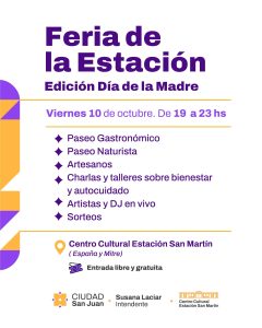 Este viernes 10 de octubre, la Municipalidad de la Ciudad de San Juan propone un espacio de...